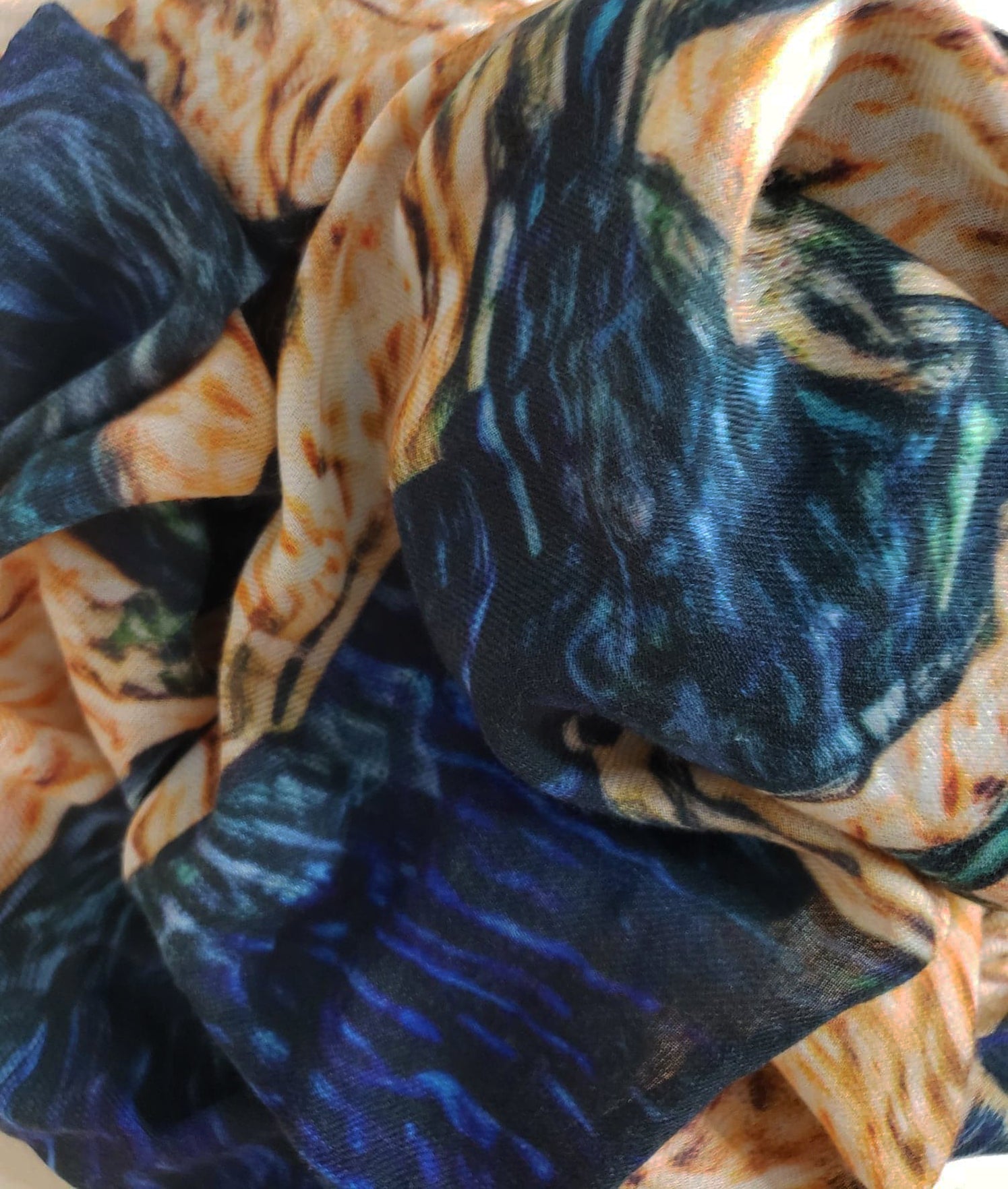 "Abstract Blue Gold" Cashmere Silk Scarf