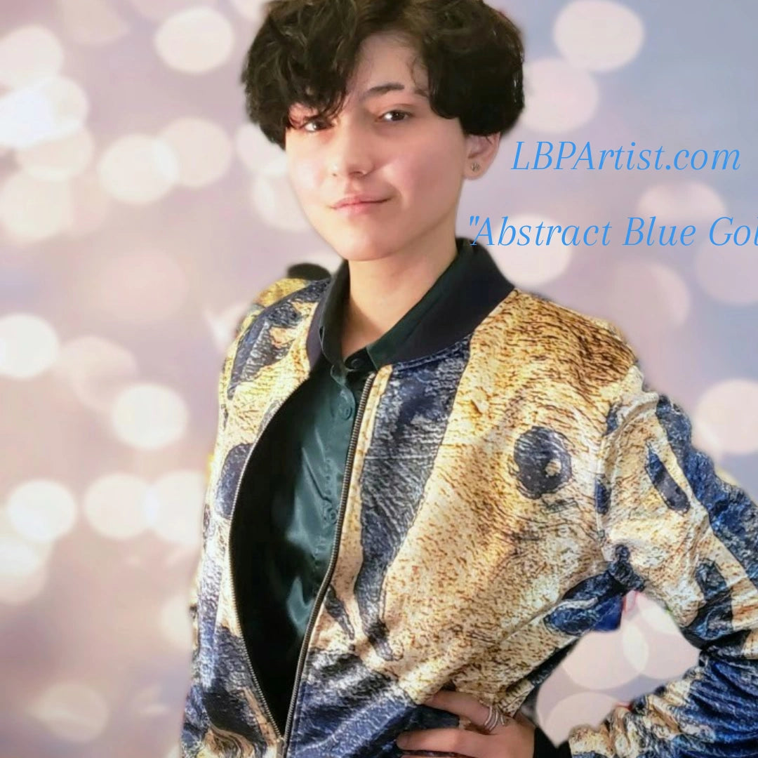 "Abstract Blue Gold" Lady B Bomber Jacket
