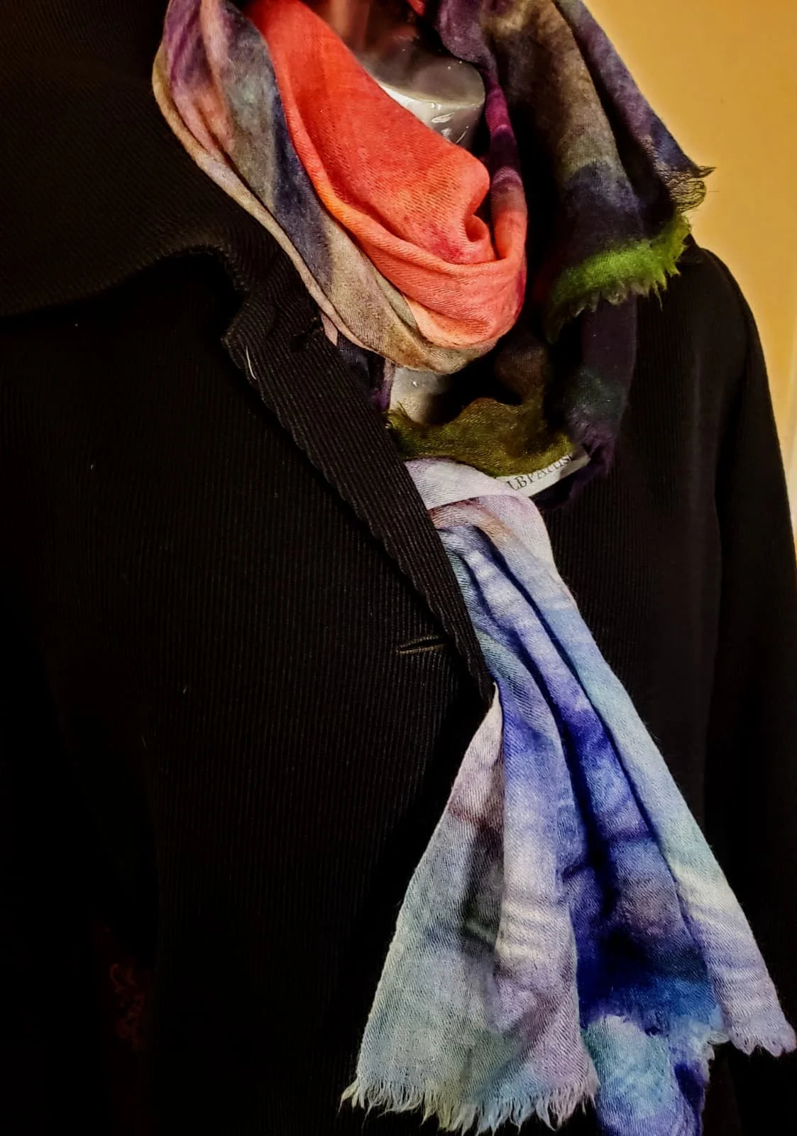 - Scarf made with soft, luxurious hand woven Cashmere 90% and 10% silk, will add a bold, modern statement to any wardrobe.