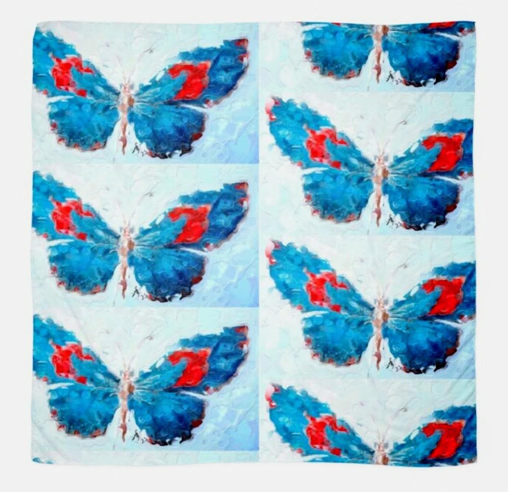 "Butterflies Turquoise" Chiffon Scarf/Sarong