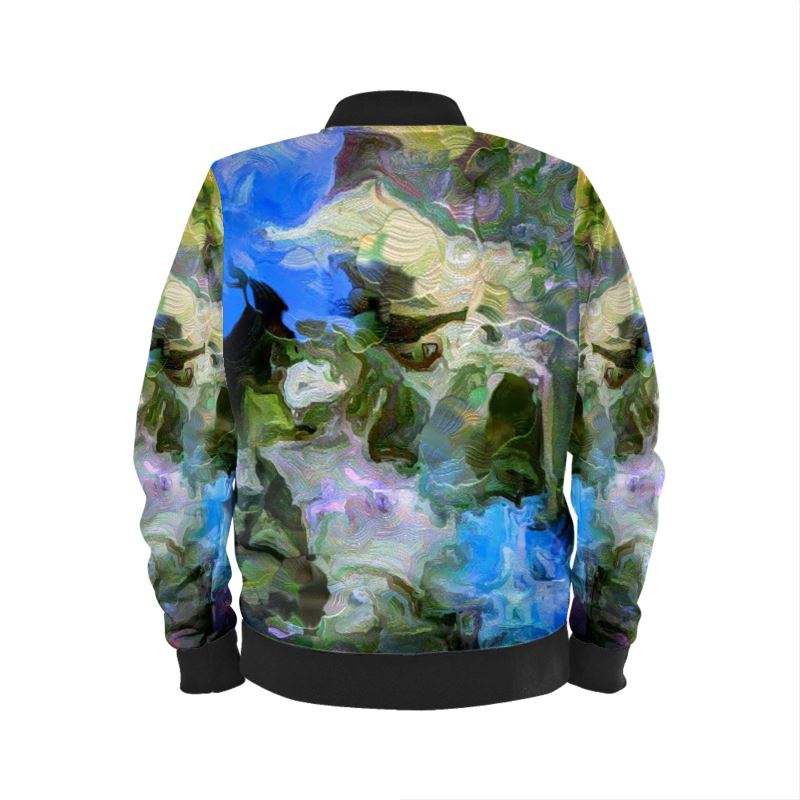 Zipper closure for a secure fit, a ribbed knitted round collar with full length sleeves. This quilted bomber is chic, with Lady Barbara Pinson Artist's design as original artwork. There are a variety of designs to choose that suit your style. Order your Lady B Bomber Jacket today and start enjoying!