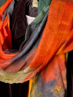 - Ladies Scarf made with soft, luxurious hand woven Kashmir/Cashmere 90% and 10% silk, will add a bold, modern statement to any wardrobe.