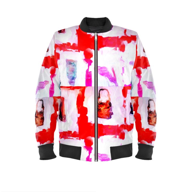 Zipper closure for a secure fit, a ribbed knitted round collar with full length sleeves. This quilted bomber is chic, with Lady Barbara Pinson Artist's design as original artwork. There are a variety of designs to choose that suit your style. Order your Lady B Bomber Jacket today and start enjoying!