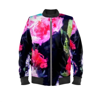 Zipper closure for a secure fit, a ribbed knitted round collar with full length sleeves. This quilted bomber is chic, with Lady Barbara Pinson Artist's design as original artwork. There are a variety of designs to choose that suit your style. Order your Lady B Bomber Jacket today and start enjoying!
