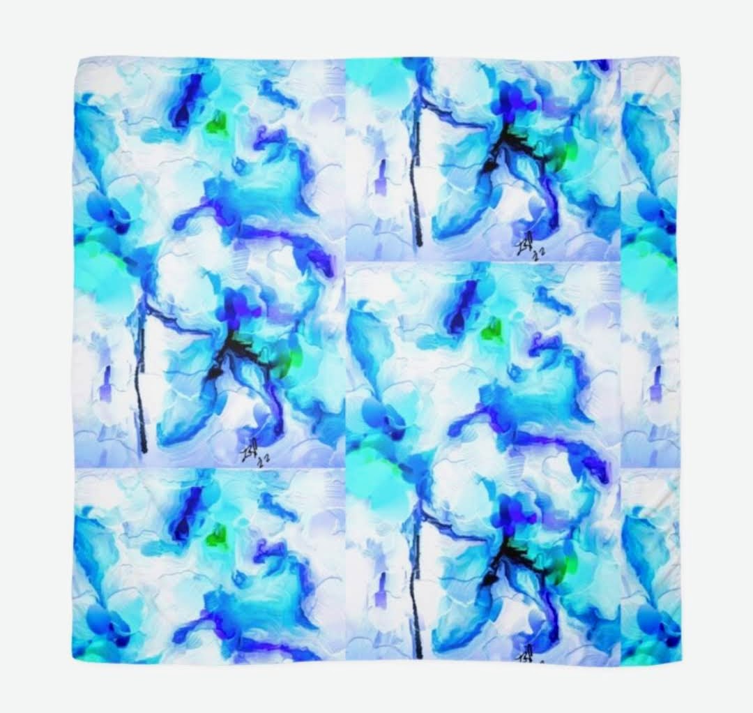 "Orchids Turquoise" Chiffon Scarf/Sarong