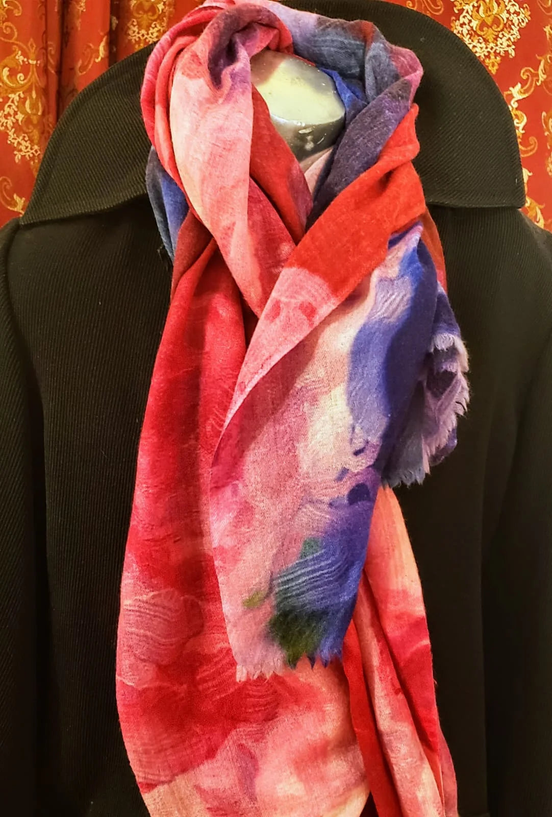 - Scarf made with soft, luxurious hand woven Cashmere 90% and 10% silk, will add a bold, modern statement to any wardrobe.