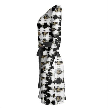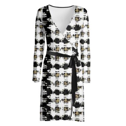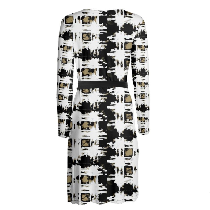 Gorgeous, original artwork by Lady Barbara Pinson Artist in abstract houndstooth for a new twist on a classic favourite. Figure Flattering with black trim and cloth belt. Wear with a jacket for "Boss Lady " meetings, or on it's own after work for a night on the town. Perfect travel dress. Figure Flattering Style.