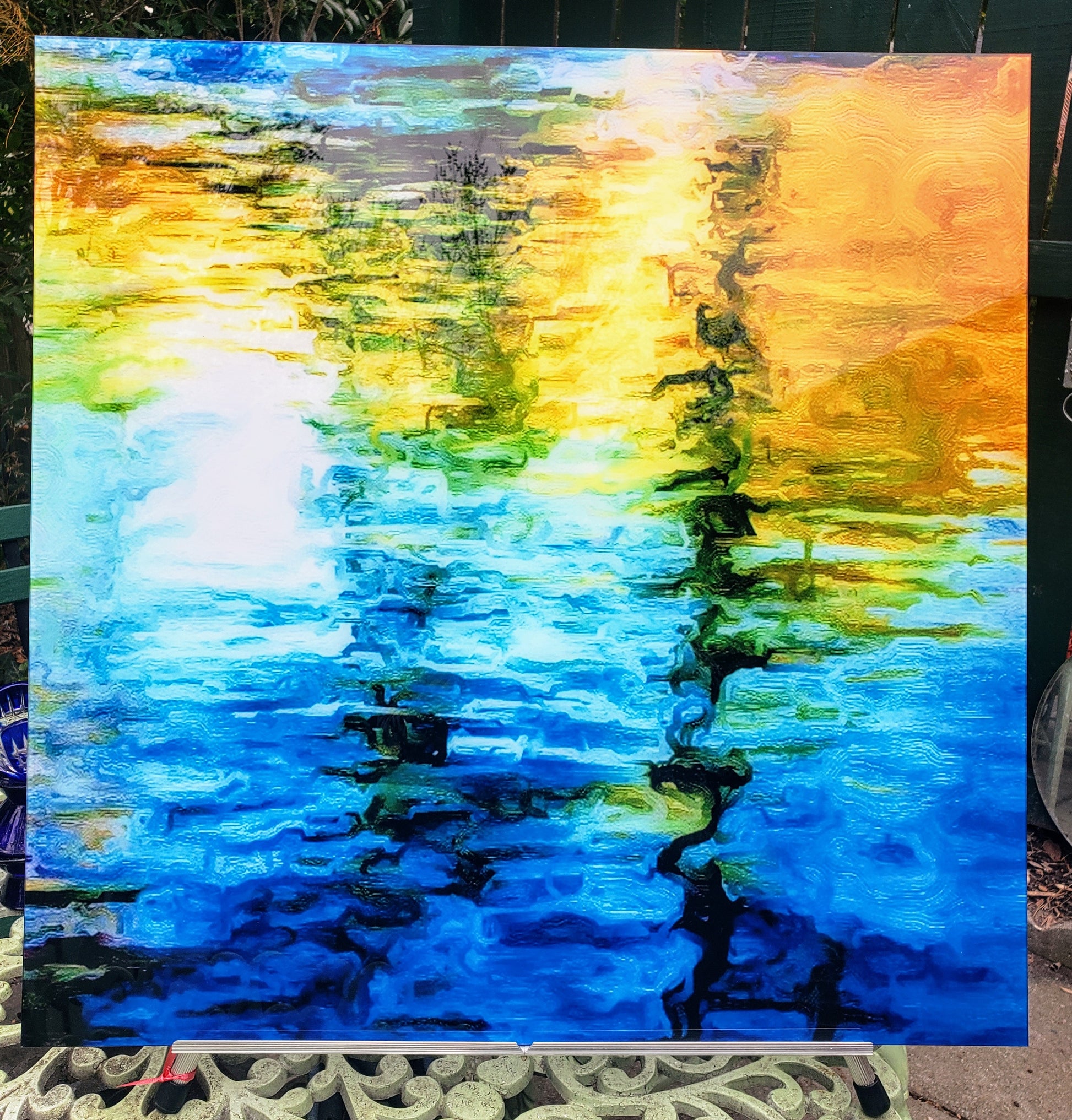 Lady Barbara's iconic "Water, Water 3" is available infused in glass! Saturated colour.