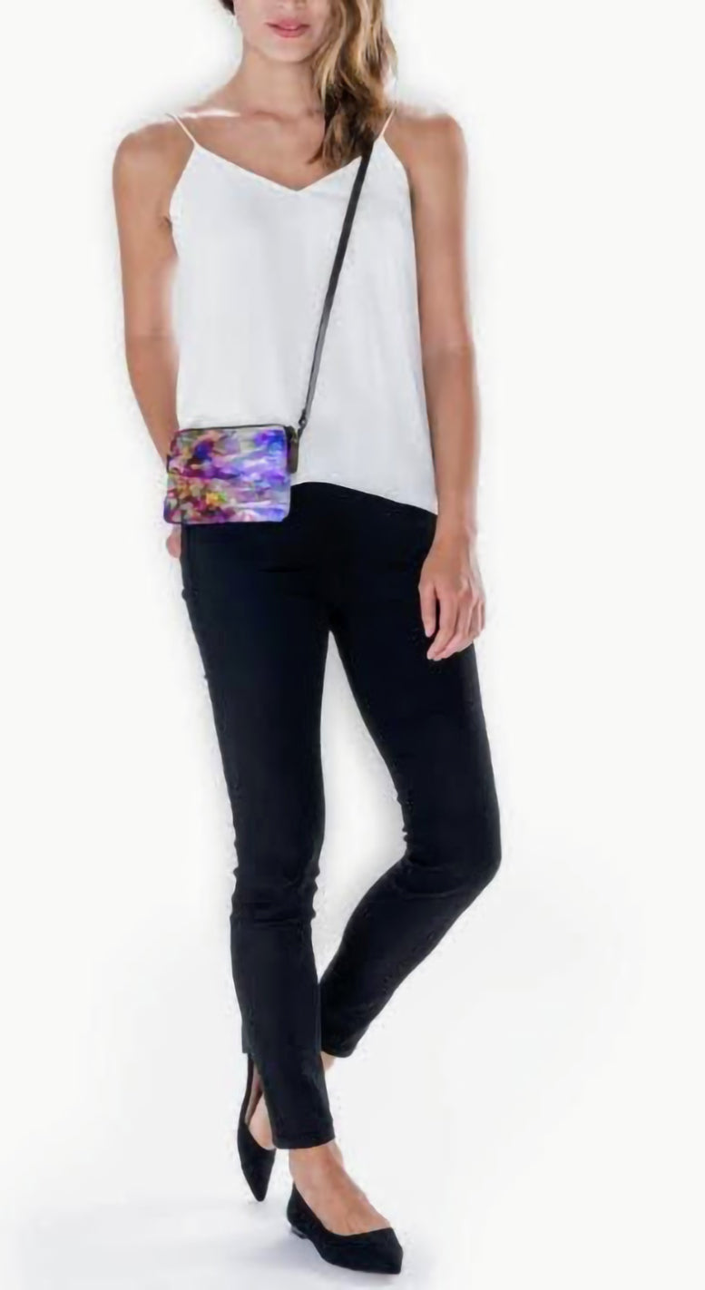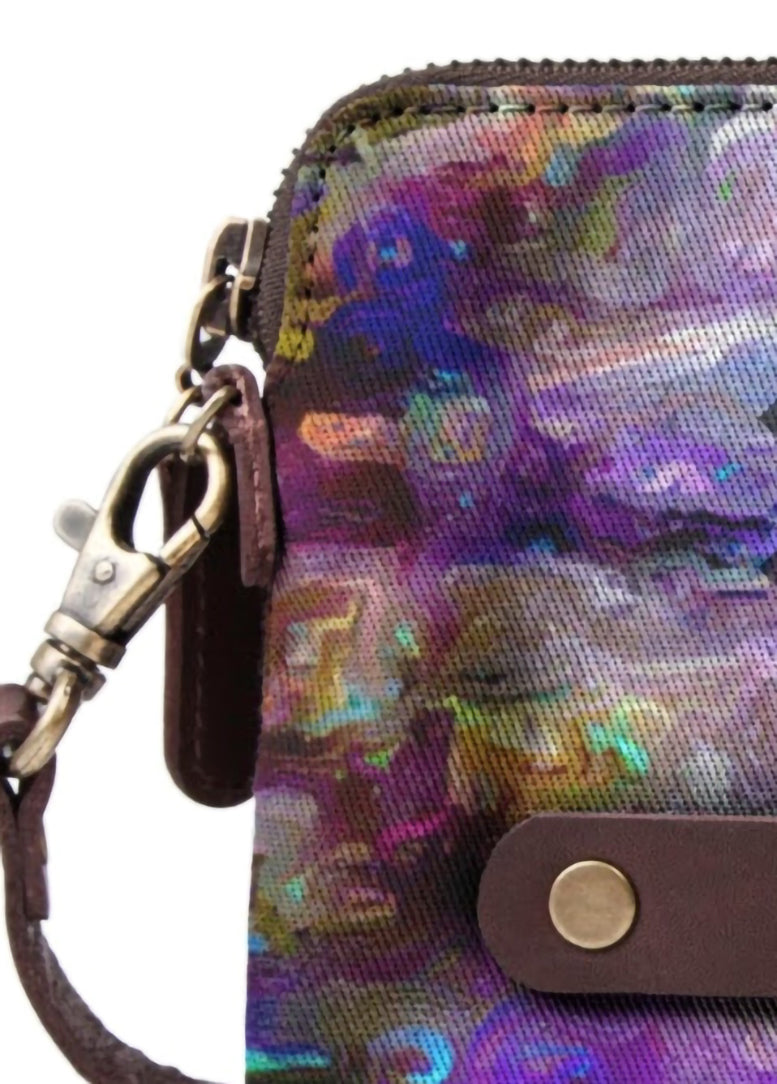 Accent your outfit with our chic custom printed Leather Clutch featuring a top zip closure and removable leather strap.